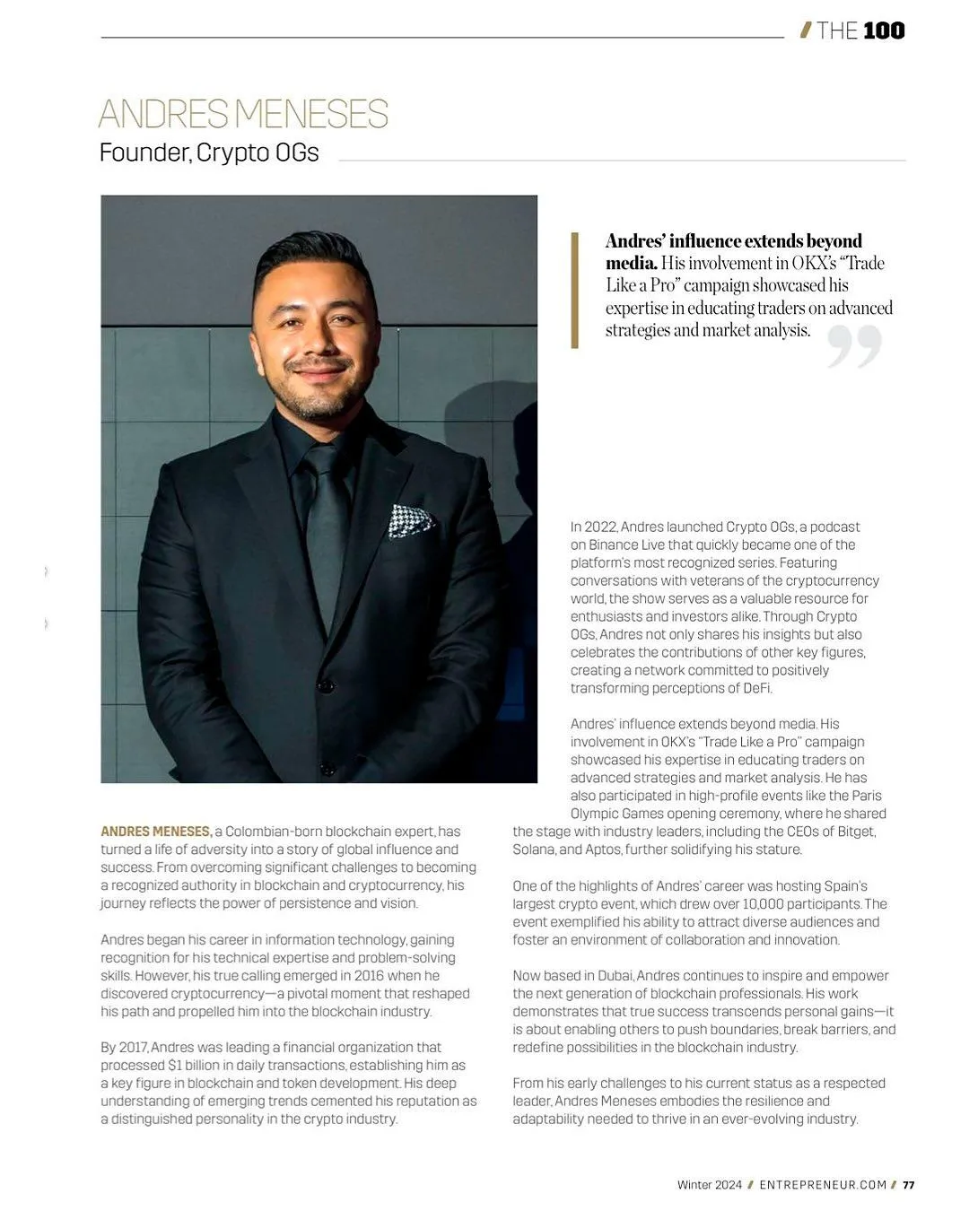Backed by a full service team and led by Andres Meneses featured in Forbes, Entrepreneur, Nasdaq, and Binance Live, we support founders who are serious about scaling.